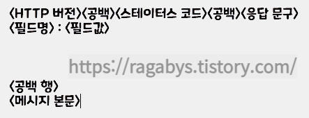 그 다음은 리퀘스트 메시지와 동일하게 메시지 헤더 부분과 메시지 본문으로 구성되어 있다.