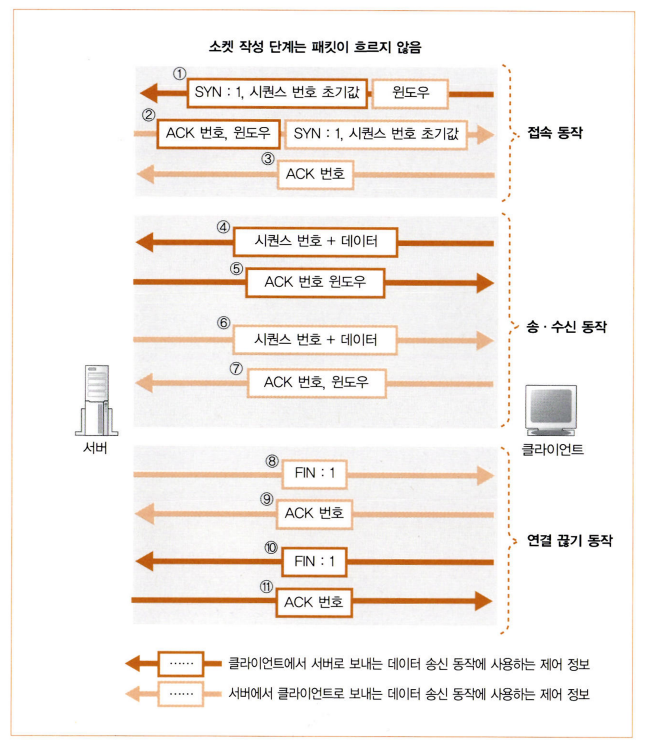 TCP 헤더를 서버 측에 전달하고 서버 측은 그에 대한 ACK 번호 응답을 반송하게 된다.